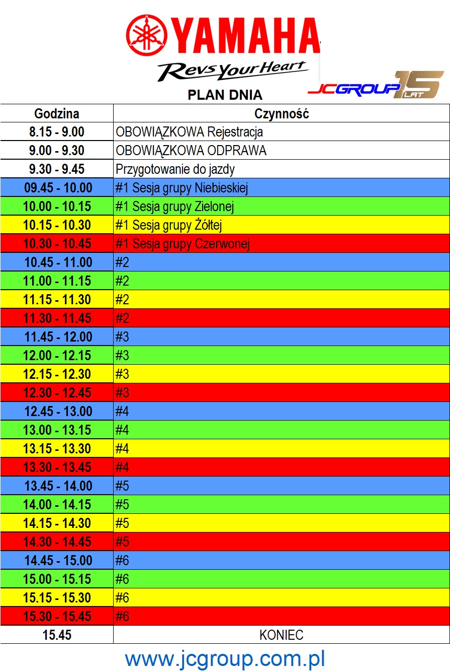 - 12.45 - 15.45 (możliwością testowania motocykli Yamaha)